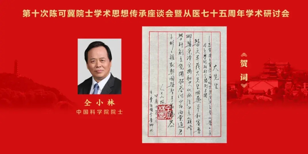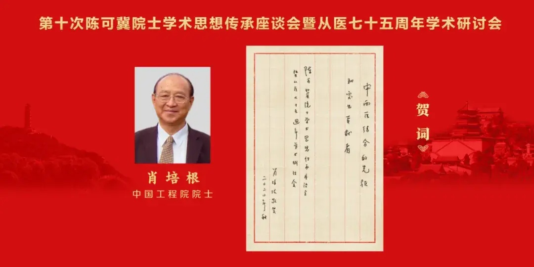 韩济生院士、陈凯先院士、陈香美院士、田金洲院士,分别畅谈与陈可冀院士共事、学习的经历,以及参与中西医结合临床与研究工作的感悟。韩启德院士、肖培根院士、张伯礼院士、王琦院士、仝小林院士分别致信祝贺,表达敬意、共话发展。院士们纷纷指出,陈可冀院士以兼容并蓄的广阔胸怀、坚持不懈的治学态度、春风化雨的高尚品格,引领推动中西医结合事业发展。希望广大中医药工作者以陈可冀院士为榜样,坚持师古而不泥古,为中医药传承创新再谱新篇、再创辉煌。