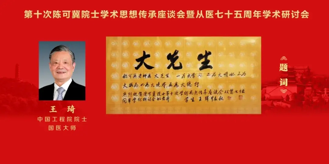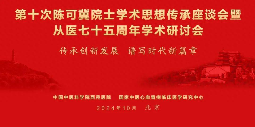 2024年10月19日,以“传承创新发展 谱写时代新篇章”为主题的第十次陈可冀院士学术思想传承座谈会暨从医七十五周年学术研讨会在京举行。陈可冀院士、韩济生院士、陈凯先院士、陈香美院士、田金洲院士,国家卫生健康委员会党组成员、国家中医药管理局党组书记、局长余艳红,中华中医药学会会长于文明,中国中药协会原会长房书亭,中国中医科学院党委书记查德忠,北京市中医药管理局党组书记、局长罗增刚等出席大会开幕式并讲话。韩启德院士、肖培根院士、张伯礼院士、王琦院士、仝小林院士分别致信祝贺。开幕式由西苑医院党委副书记、院长李秋艳主持。