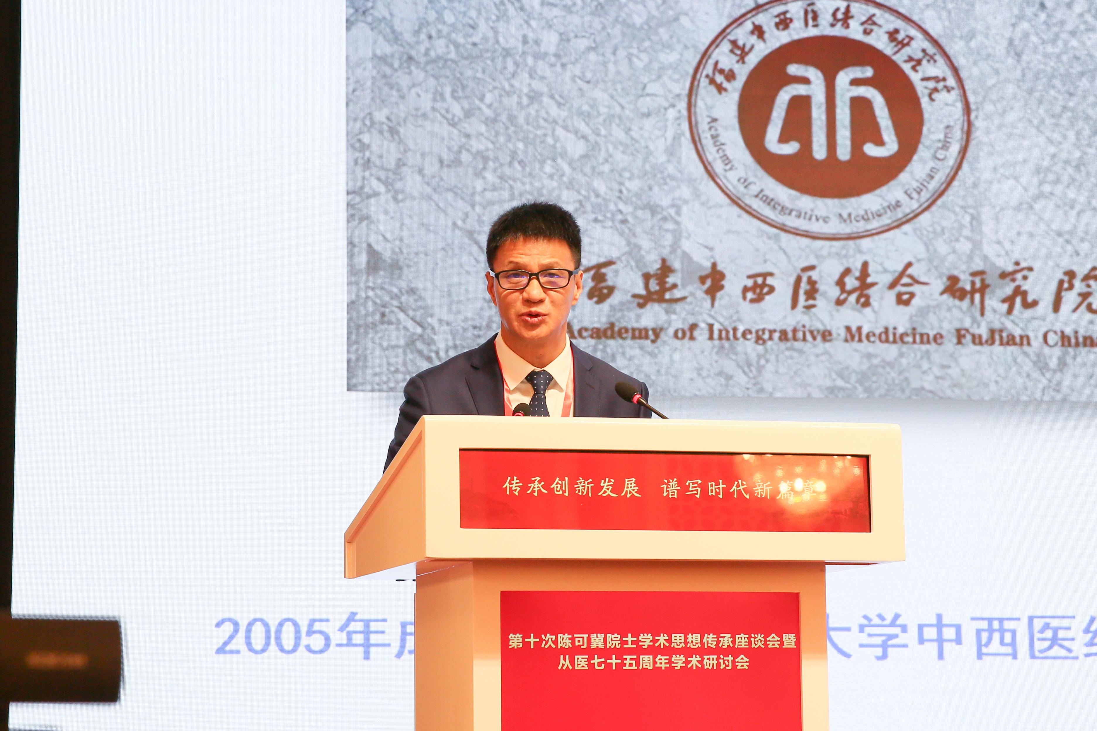学术研讨环节,与会专家学者分别围绕陈可冀院士的从医之路、治学思想、经验传承等作交流讨论。中国中医科学院广安门医院王阶教授报告《学习陈可冀院士冠心病中西医结合传承创新研究》,广东省中医院张敏州教授报告《南北交融——陈可冀院士学术思想在广东》,福建中医药大学彭军教授报告《陈可冀院士学术思想在福建的传承与发展》,中国中医科学院西苑医院史大卓教授报告《大国良医结合医学75年笃志开拓创新之路——陈可冀院士从医75年故事分享》。上海长征医院吴宗贵教授、中国中医科学院西苑医院徐凤芹教授主持报告环节。北京中医药大学王显教授、广东省中医院郑广娟教授、中国中医科学院西苑医院徐浩教授作为学生代表交流发言。中国中医科学院西苑医院马晓昌教授、福建中医药大学褚剑锋教授主持主题讨论环节。