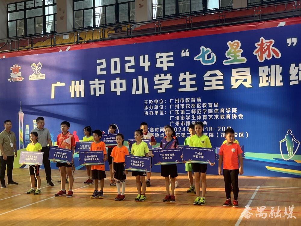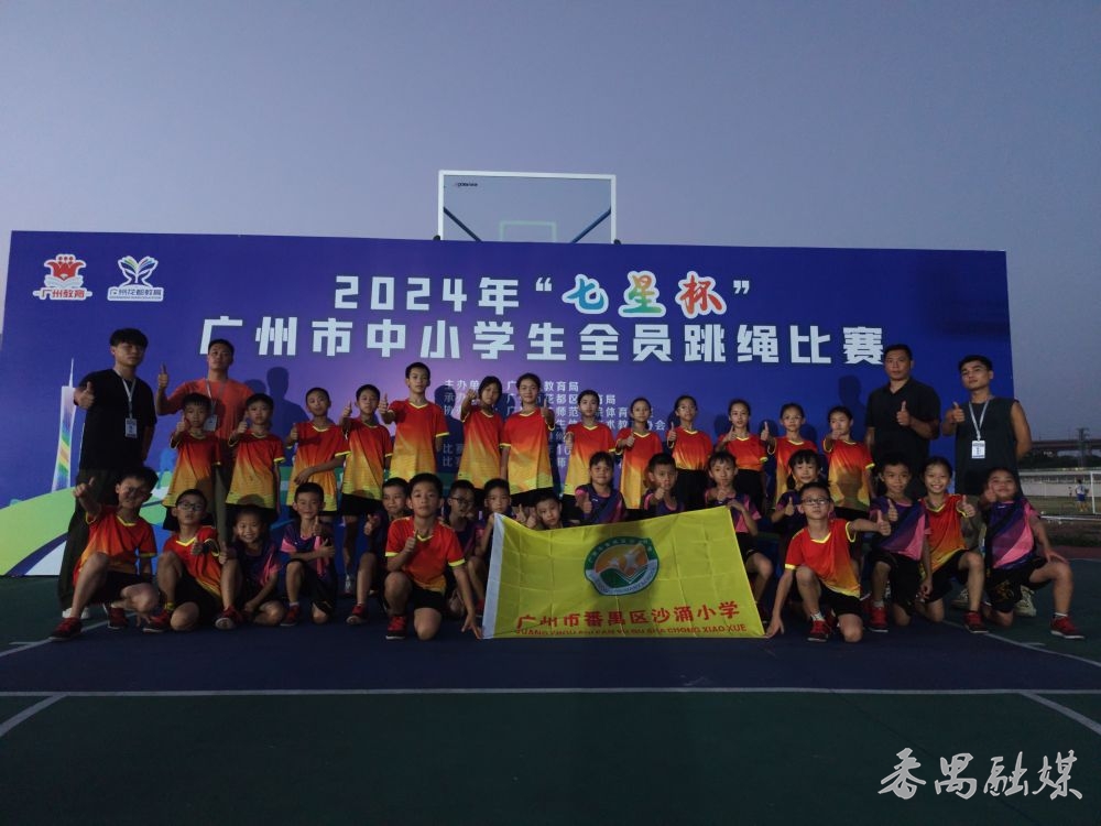 10月18日至20日,“七星杯”广州市中小学生全员跳绳比赛在广东第二师范学院花都校区举行。在这场高手如云的激烈角逐中,番禺区沙涌小学跳绳队凭借出色的表现,分别获得超级组低年组团体总分一等奖、超级组高年组团体总分一等奖、超级组集体自编赛一等奖等三个大奖,为番禺绳坛赢得了殊荣。