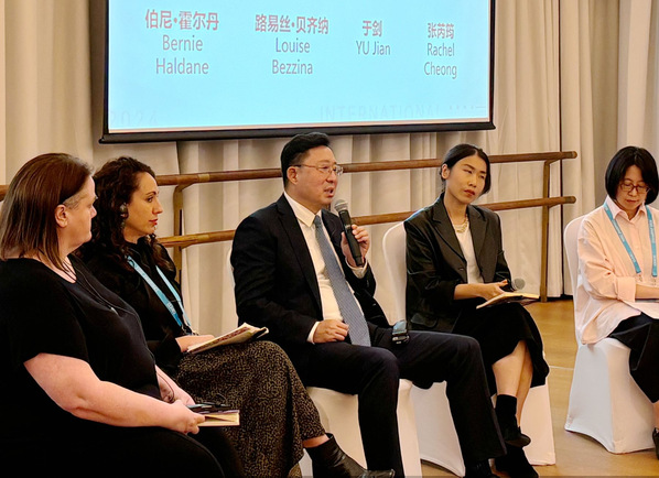 于剑在嘉宾对话环节分享的内容主要包括如何推动舞台艺术创新交流,办好国际间的艺术节和优秀演艺项目巡演,特别提到鼓励青年创新,关注历史文化当代数字化活化之于艺术创作的重要作用,以及山东外事职业大学和著名收藏家窦宝荣先生常山博物馆的数字化实践和青创基地建设的重要性和未来前景。