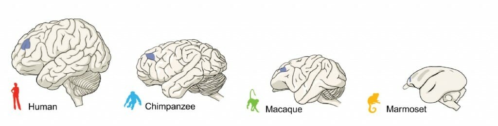 人类和灵长类前额叶皮层数据取样位置 (图片来源:参考文献1)