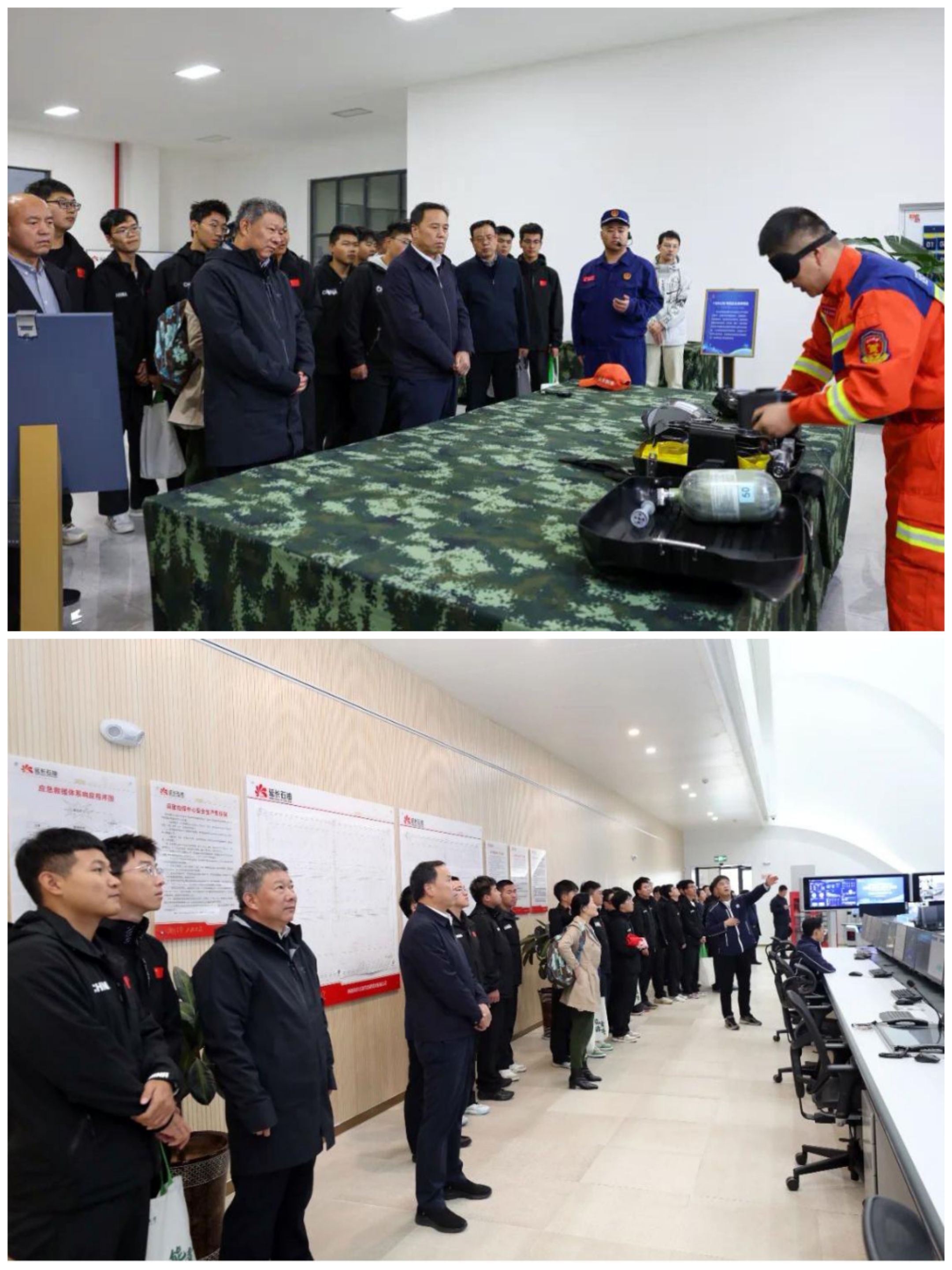 主题班会后,来兴平一行在王春刚和巴拉素煤业公司、可可盖煤业公司主要负责人的陪同下,实地考察了延长石油巴拉素煤业智控中心、副立井井塔、救护中队,可可盖煤矿北一风井、综采设备库等现场,并就相关问题不时与技术人员亲切交流。