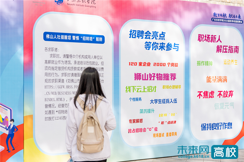 校政行企,多方携手。本场招聘会吸引120余家用人单位参加,来自大湾区优质企业,共计提供2000多个就业岗位数,如华为慧通、顺丰速运、麦当劳、汇丰环球、蓝月亮、广东邮电、美的智慧家居、沃尔玛、联塑集团、佛山照明、骆驼户外用品、佛山照明、丝芙兰等企业到校招聘。岗位覆盖信息通信、互联网、教育、对外商贸、文化创意、媒体运营等行业,涉及计算机类、管理类、数媒类、外语类等学科专业,吸引了4000余名毕业生参会求职。