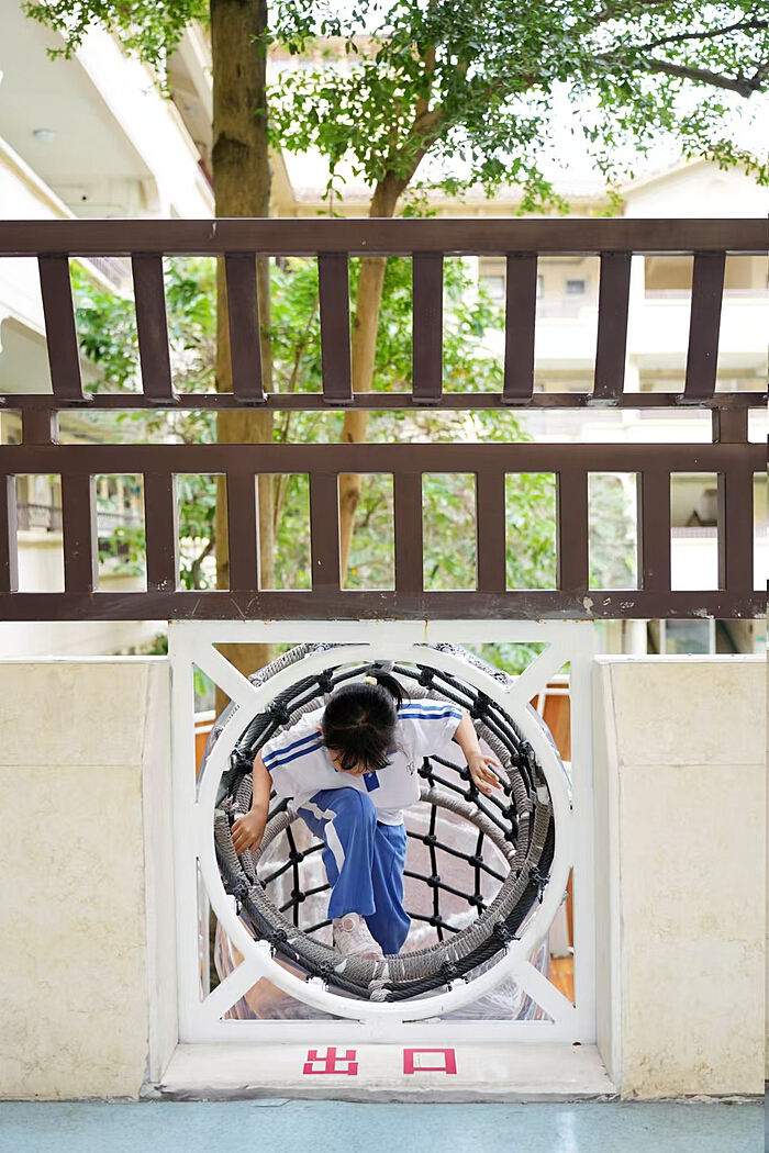 体育教师李铭龙介绍,老师会在常规体育课堂上教孩子爬、跳、抓、跑等运动技能,有了树屋后,可以让学生把学到的技能更好地运用起来。玩着游戏就上完了体育课,也能锻炼他们的四肢力量、平衡能力、身体协调性和团队合作精神。
