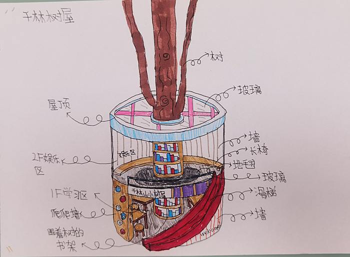 在树屋建设的过程中,学校还以“树屋小小建筑师”为主题开展项目式学习活动。科学和美术社团的学生不仅参与到树屋的设计和建造,还在这一过程中探索物理结构的基本原理,体验工程设计的乐趣。他们通过实地测量、方案设计、成果展示等环节,提出了他们对树屋造型和过程的期待,共同创造一个心中的梦想之地。
