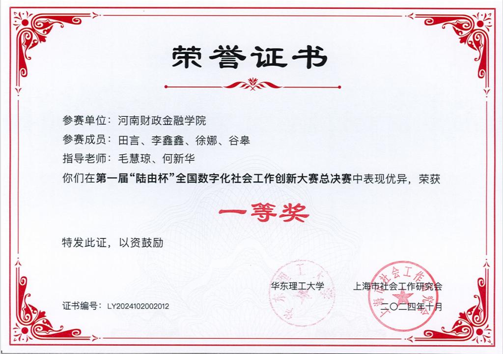 河南财政金融学院代表队在首届全国数字化社会工作创新大赛决赛中荣获一等奖