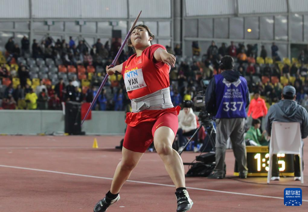 严子怡8月份参加利马U20田径世青赛女子标枪决赛场景。新华社发