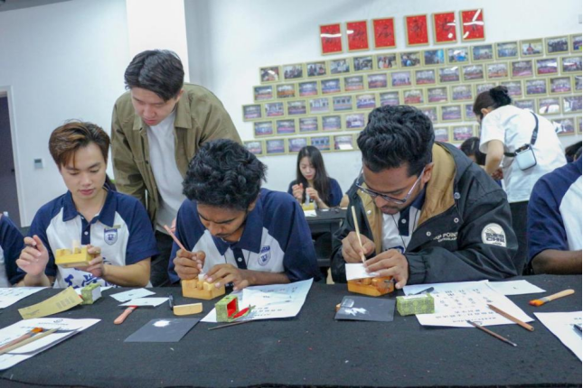 此外,中外学生还体验了刻汉字印章的过程,亲手刻制了“食”“禾”等与粮食相关的汉字,体验汉字文化魅力,并用篆刻作品绘制成一幅以“禾”为主题的宣纸画作品。“这次活动,让我更加深刻感受到了中国为我们世界粮食安全作出的贡献,也感受到了中华汉字的魅力。原来每一个小小汉字的背后都有那么丰富的意义。”来华留学生郑秋香边展示自己刻制的印章边说道。