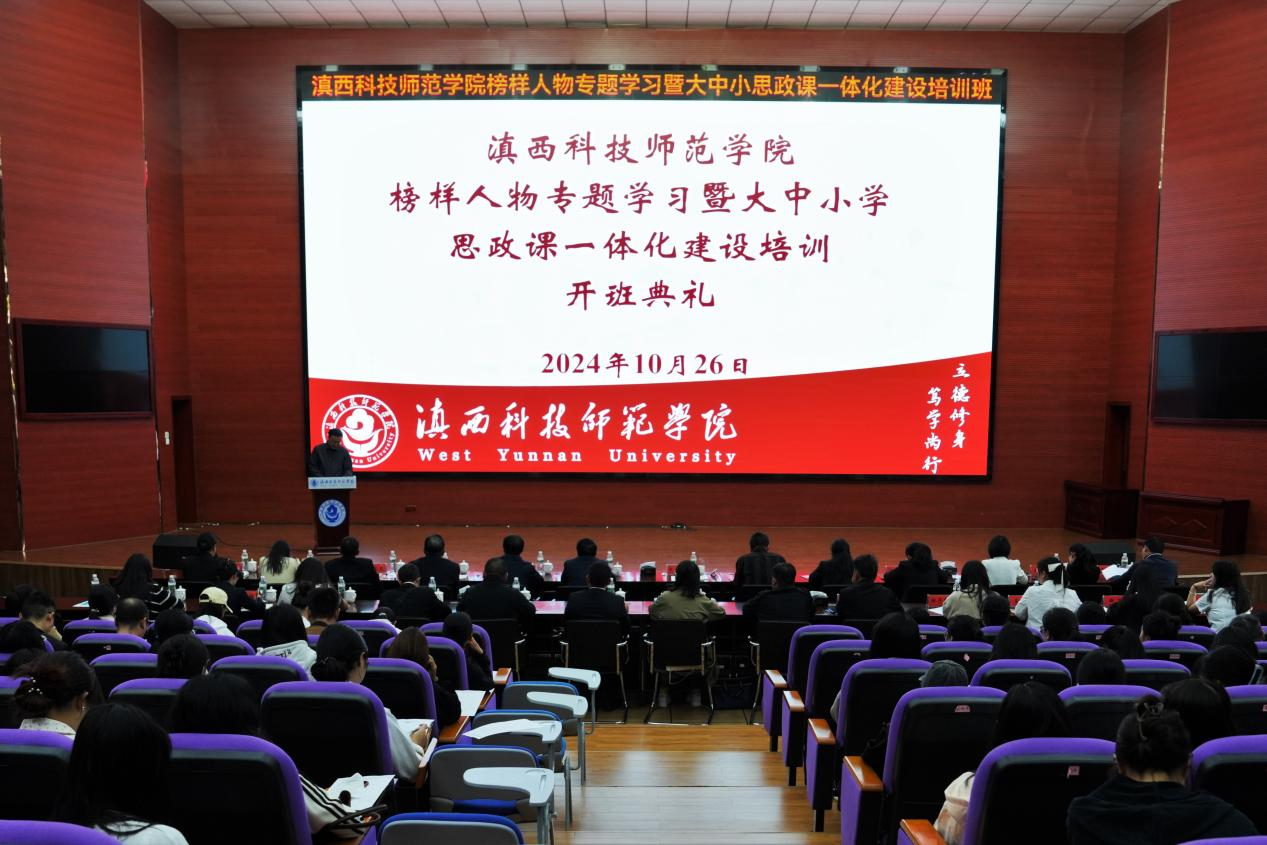 10月25日至27日,滇西科技师范学院举办榜样人物专题学习暨大中小学思政课一体化建设培训,聚焦立德树人根本任务,推进学校思政课建设高质量发展,号召全校师生以时代楷模和全国优秀共产党员为榜样,汇聚起同心建校的磅礴力量。校党委书记阮凤斌出席开班典礼并讲话,副校长张雁梅主持开班典礼。