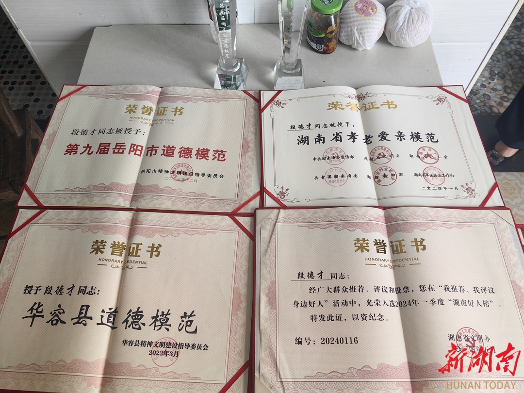 30年来,段德才赡养5位老人,养育4个孩子,用坚实的臂膀守护一家老小,书写了一段动人的亲情故事。今年初,他被评为孝老爱亲类“湖南好人”。