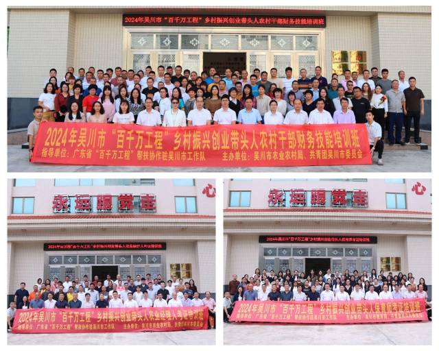 开班仪式分别在10月23日、26日举行,培训班由省“百千万工程”驻吴川市帮扶协作工作队支持指导,吴川市教育局、农业农村局、团市委联合主办,由广东机电职业技术学院承办,广东省社科院、市委老干部局、市委党校、广州赛诸葛控股集团有限公司、中国联通广东省分公司、广东省电子商务商会、广州商业总会、粤旺农业集团等单位协办。三个培训班共招收学员200余人。
