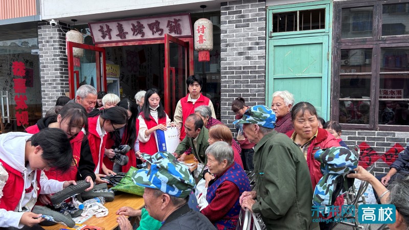 活动伊始,志愿者们向村民们致以亲切的问候,村民们也对志愿者们的到来表示热烈的欢迎。随后,志愿者们脸上洋溢着温暖的笑容,将一件件整齐叠放的军训服和精心准备的小礼品递到村民们的手中,传递着满满的关怀与温情,这份心意在无声中流淌开来。