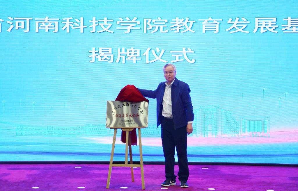 在与会人员的共同见证下,宋亚伟为河南省河南科技学院教育发展基金会揭牌。