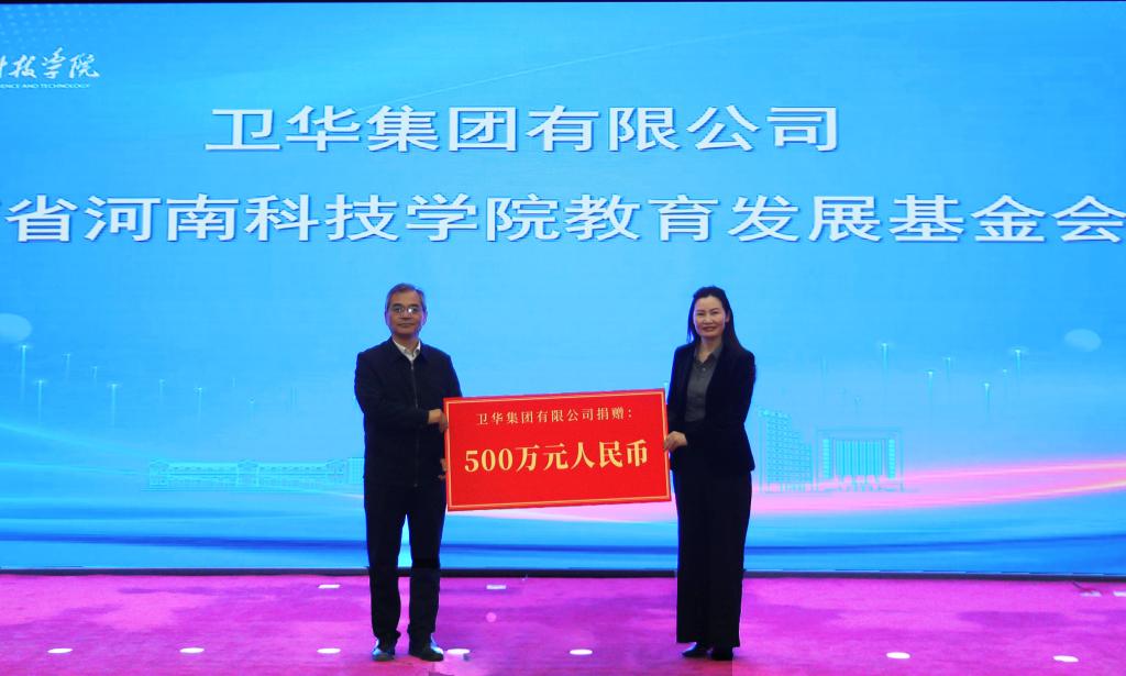 王海燕、陈希龙分别代表卫华集团有限公司、河南省农麦种业有限公司向学校进行了捐款。王海燕作为捐赠企业代表发言。她表示教育是国家的未来、是民族的希望,捐资兴教、爱心助学是一项功在当代,利在千秋的事业。作为学校的长期友好合作单位,公司将继续深入推进校企合作,助力学校培养出更多具有创新精神和实践能力的优秀人才,为社会做出更大贡献。