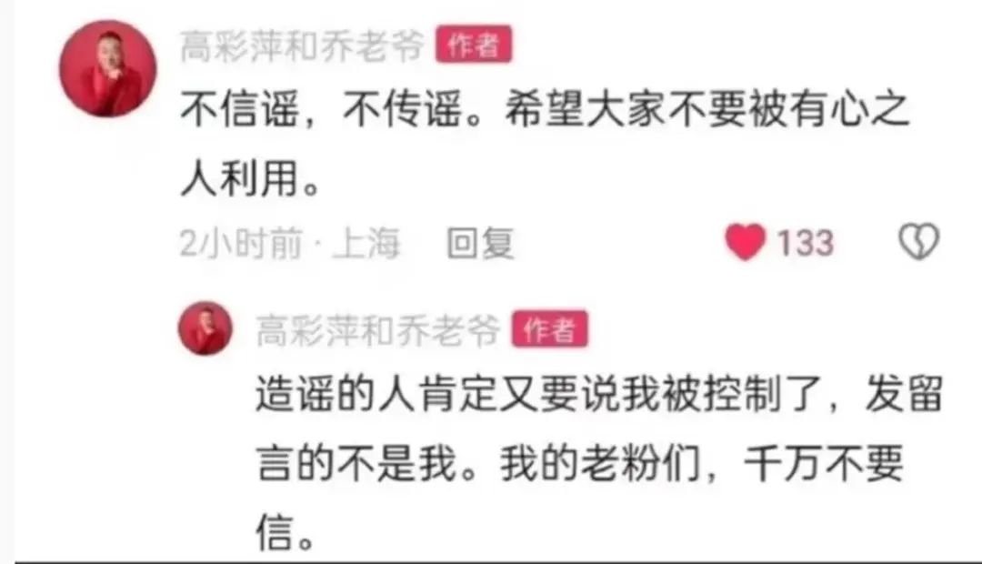 乔任梁父母在其个人账号评论区发声辟谣