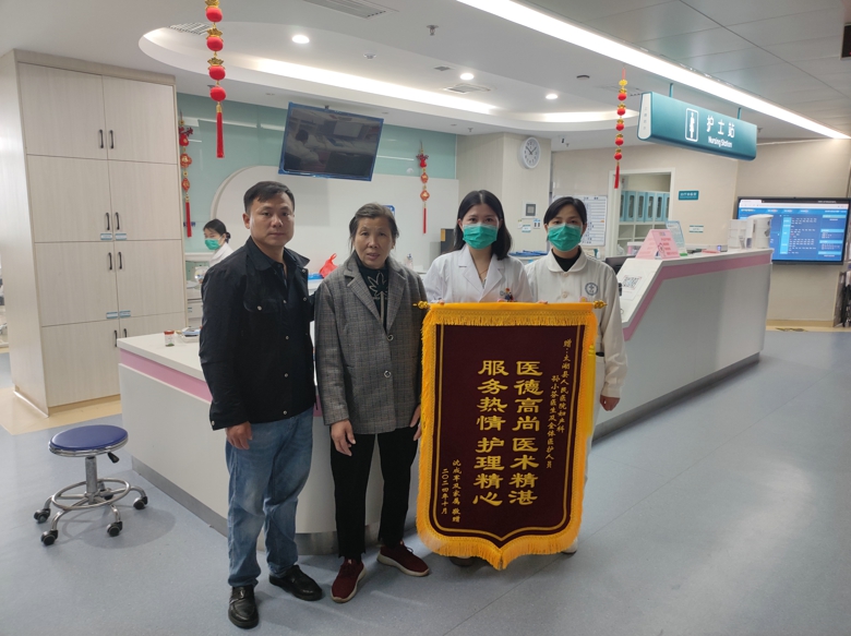 经过医护人员的精心治疗和护理,该产妇在抢救后的第二天转回到妇产科病房,并于10 月26日康复出院。为表达对医护人员的深深感激,章女士的家属特意将一面写着“医德高尚 医术精湛 服务热情 护理精心”的锦旗送到太湖县医院妇产科。