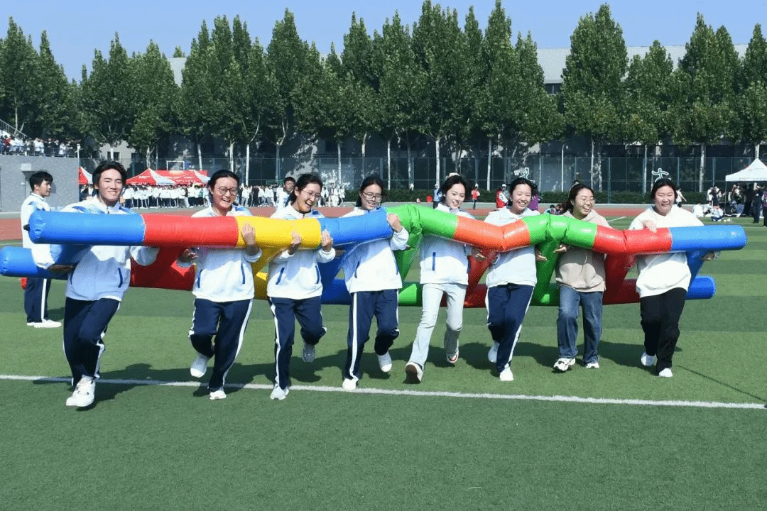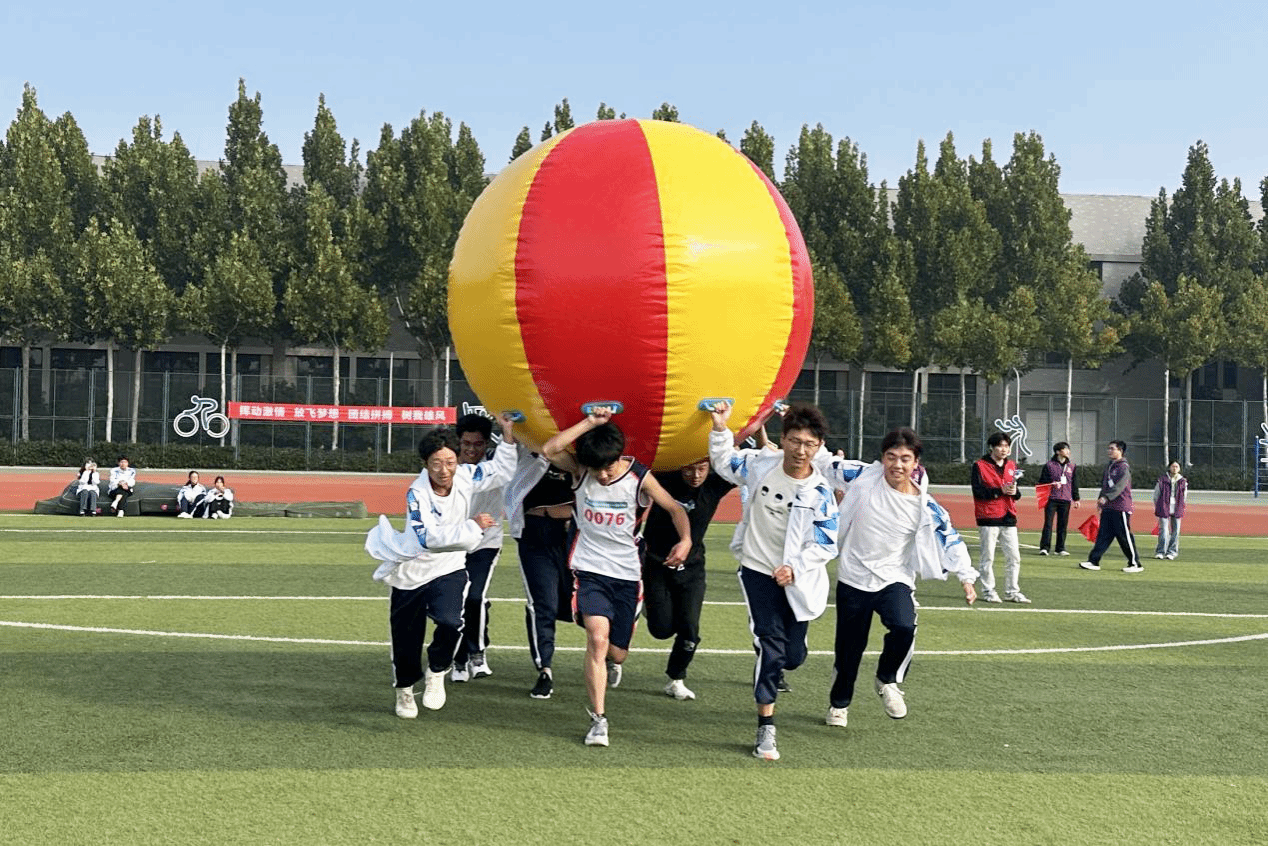 巨型“风火轮”在操场上滚动,同学们齐心协力,智慧与意志并重,向着终点冲刺,展现出了不凡的意志力与团队精神!