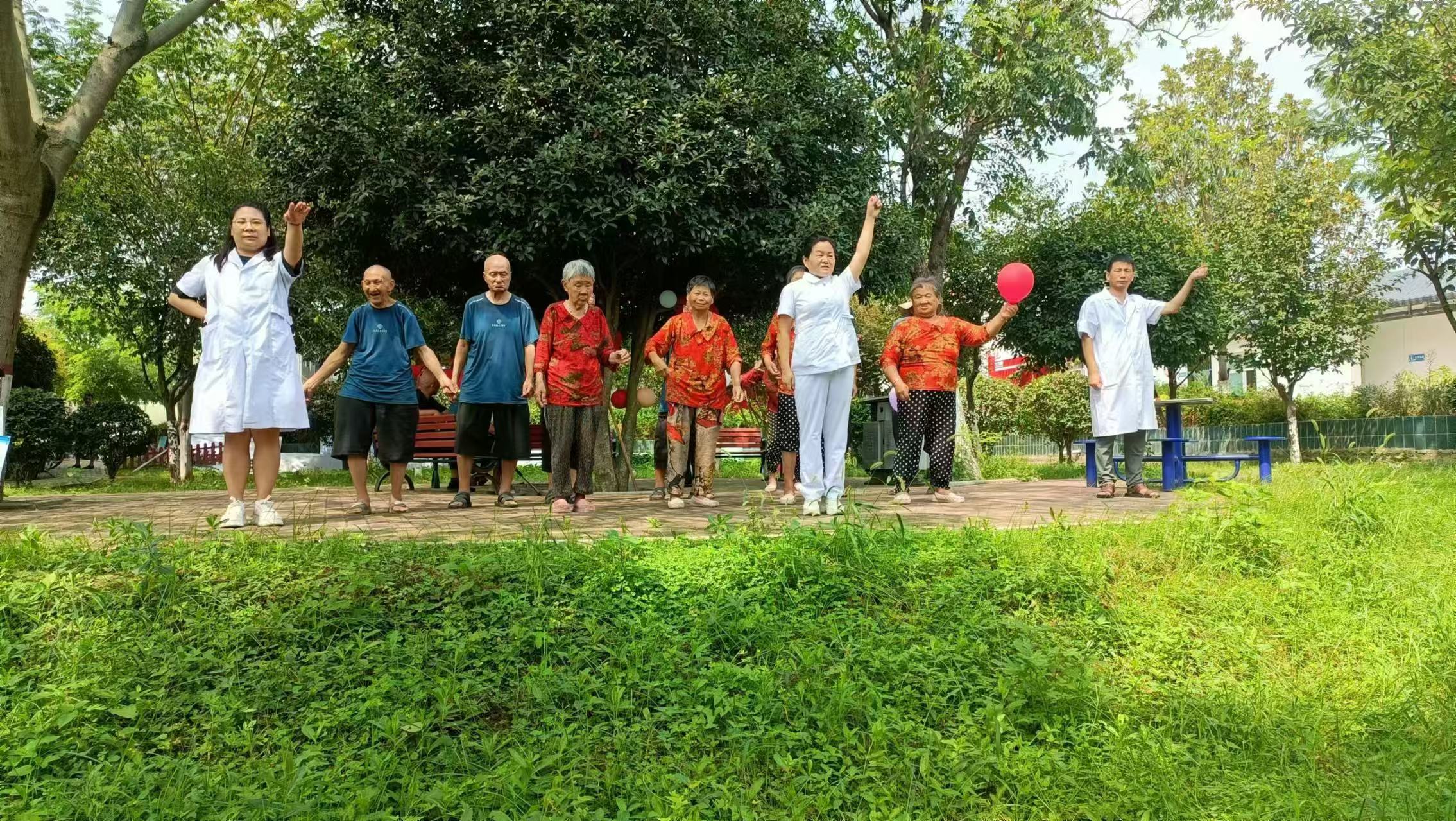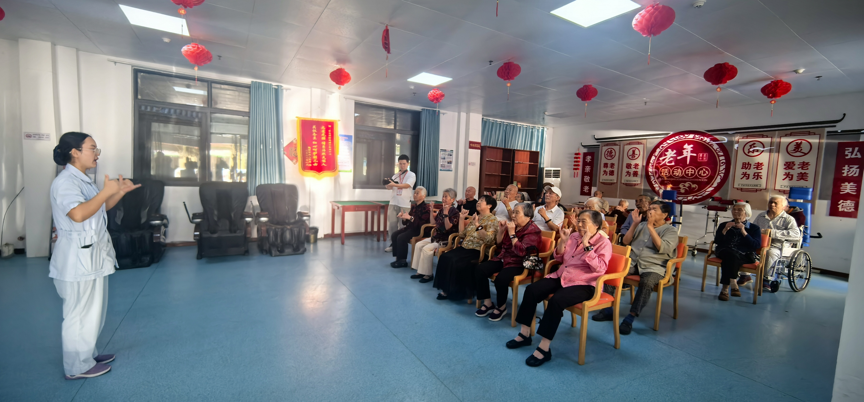 在这里生活的老年人大多是“五保户”,到了敬老院以后,他们享受到了全方位的照护服务。尤其有了医疗团队的介入,除了每天进行生命体征查房、慢性病管理等专业医疗服务外,医养服务中心还专门设置了健身区,工作人员会定期带领老年人做手指操以及活动肩关节、踝关节、髋关节等运动。