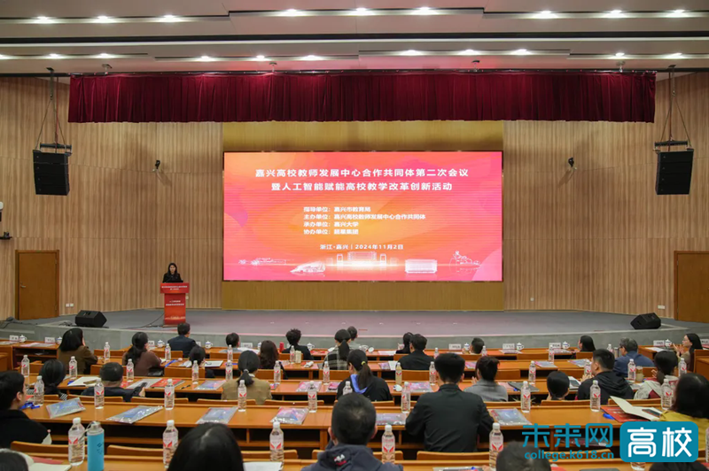 为助力嘉兴高校教师发展中心建设,促进高校教师专业成长,11月1日至2日,嘉兴市高校教师发展中心合作共同体第二次会议暨人工智能赋能高校教学改革创新论坛在嘉兴大学举办。嘉兴市教育局党组成员、副局长王郁春,嘉兴大学党委委员、副校长(主持日常工作)张琦,嘉兴南湖学院党委委员、副校长朱蓉,同济大学浙江学院党委副书记闻泉新,嘉兴职业技术学院党委副书记张红宇,嘉兴南洋职业技术学院党委书记、校长王雪亘出席开幕式。