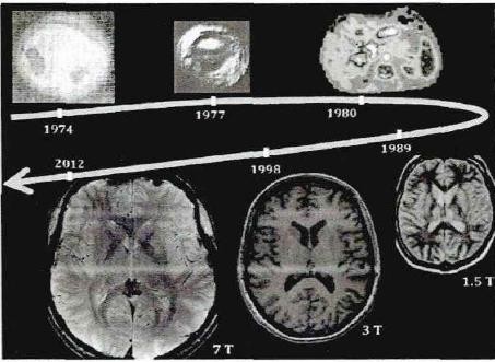 图1 不同磁场强度的MRI成像(图片来源:Christakis C.Magnetic Resonance Imaging[M]. Taylar and Francis:2014)