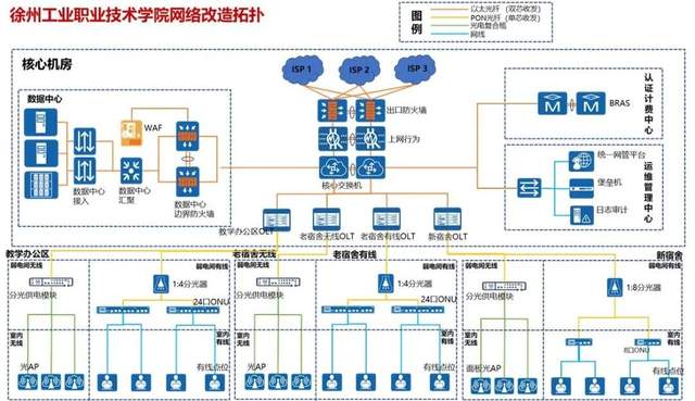 这种情况下,如何构建一个能够全面满足在线教学与师生用网需求的全新校园网络,就成了徐州工业职业技术学院亟待解决的问题。