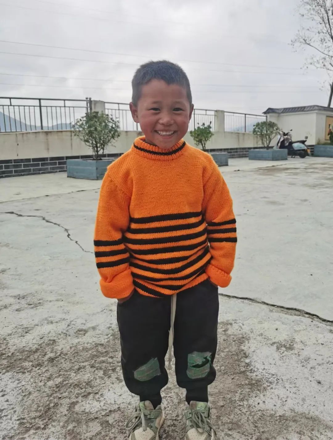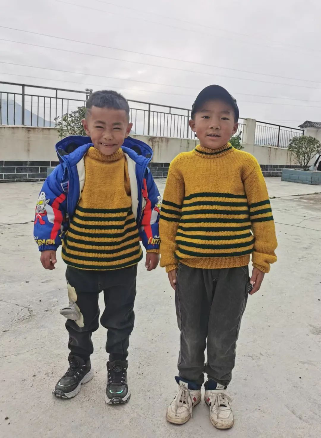 看到孩子们穿上了崭新的毛衣