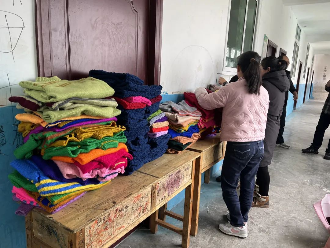 将爱心毛衣送到了学校孩子们的手中