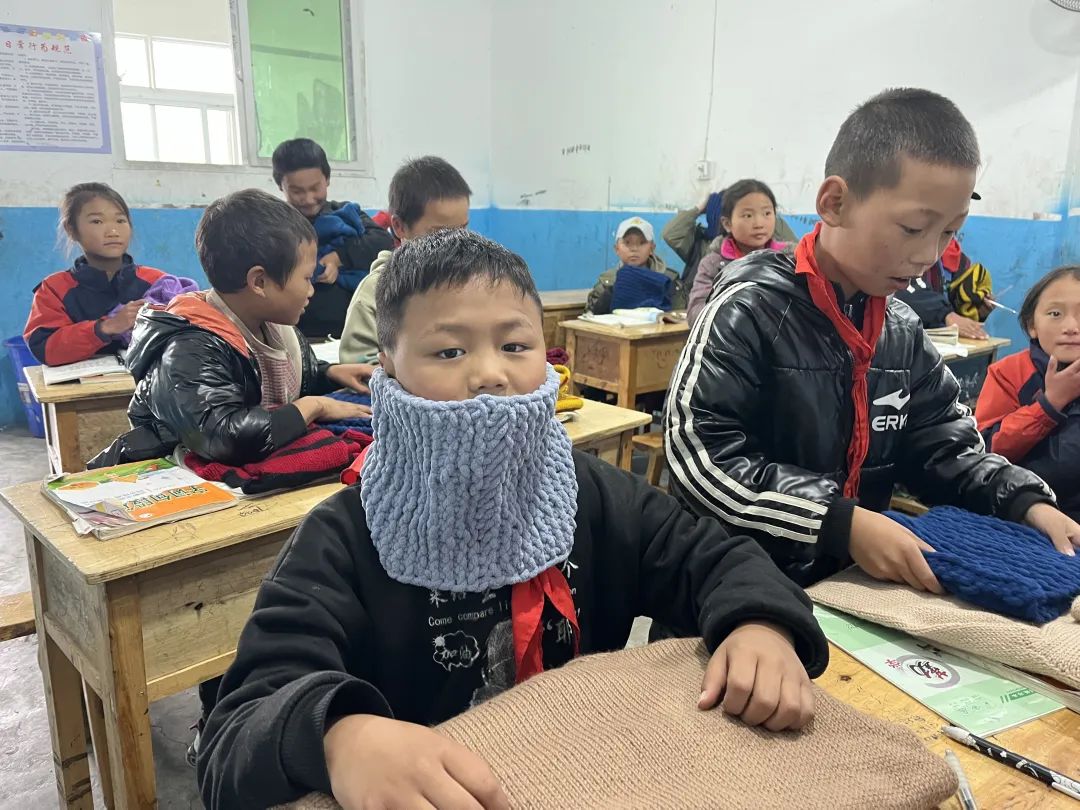 孩子们穿上了暖乎乎的毛衣,还收到了领圈。