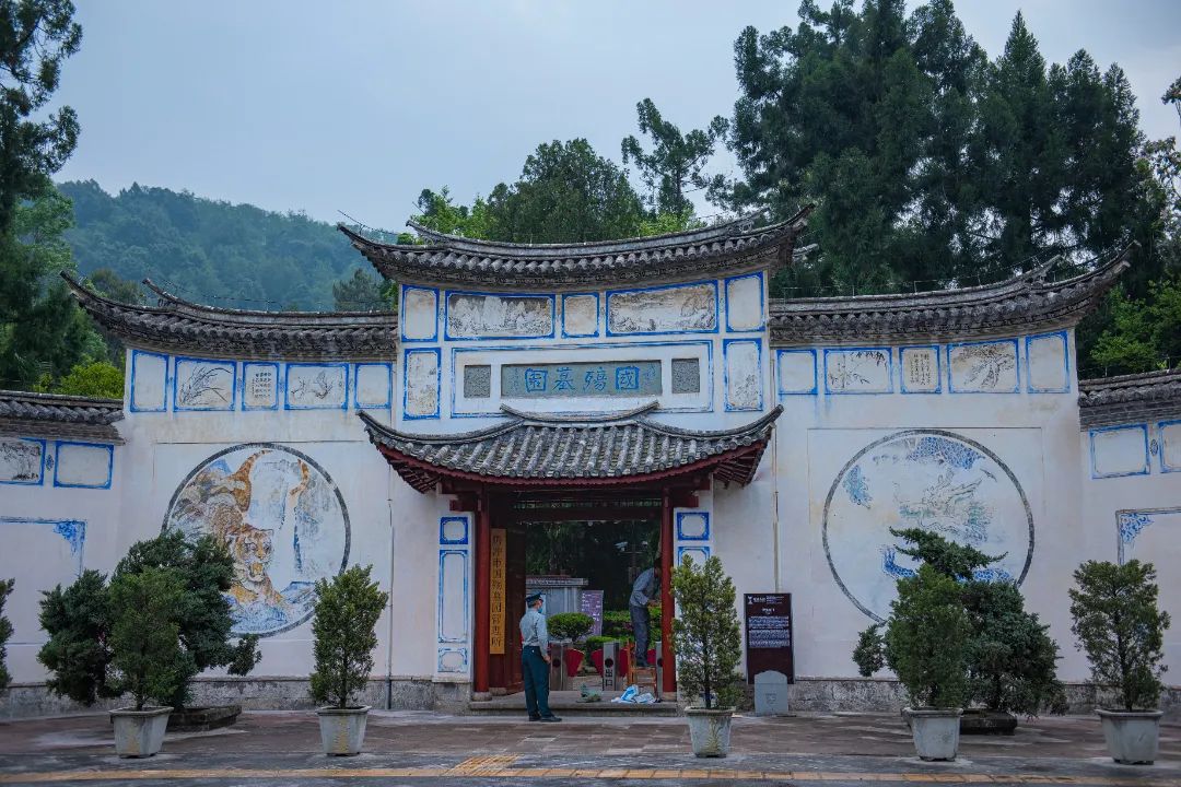 国殇墓园位于腾冲城来凤山麓小团坡东北面。1944年腾冲光复后,为纪念滇西抗日战争胜利和安葬腾冲战役阵亡将士遗骨,由李根源先生倡建,于1945年7月7日落成。