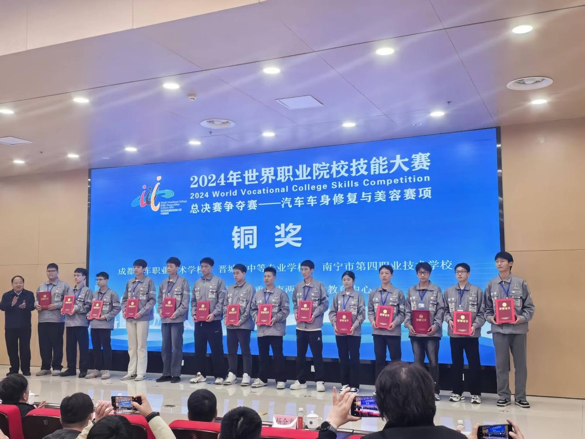 在2024年世界职业院校技能大赛总决赛争夺赛中,汽车职校积极统筹协调各项事宜,全力做好服务保障工作,经过参赛师生们的共同努力,汽车职校三支参赛团队最终脱颖而出,在汽车维修赛项中获银奖,在汽车车身修复与美容赛项、现代加工技术赛项中获铜奖,成功斩获一银两铜的好成绩。此次获奖不仅是对汽车职校教育教学成果的一次检验,更是对学校专业建设水平和人才培养质量的一次肯定。