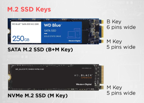 如果你的主板是近两年生产的主板/笔记本主板,那么应该符合市场主流,即大部分M.2 2280尺寸的SSD,都是KEY-M为主了。部分高端主板则是B+M。但如果你的主板上超过5年的产品,那么务必确认你的M.2插槽的金手指KEY类型!