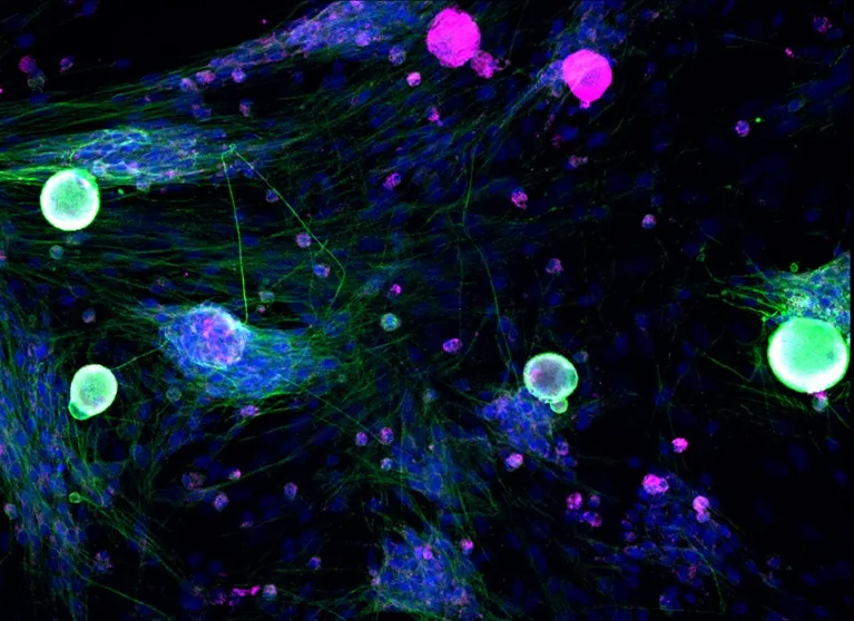 大多数男性神经元中不存在催乳素受体(绿色)。(图片来源:Frank Porecca)