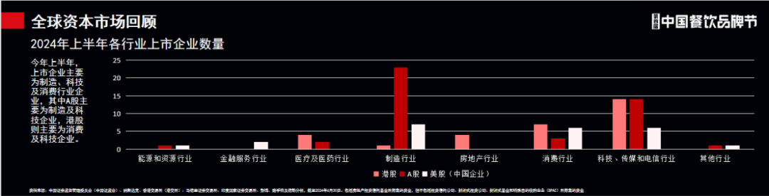 上半年,这三大资本市场新上市的主要为制造、科技及消费领域的企业,其中A股主要为制造及科技企业,港股主要为消费及科技企业。