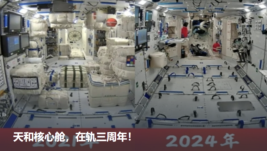 2024年刚好是天和核心舱在轨三周年(图片来源:中国载人航天官方网站)