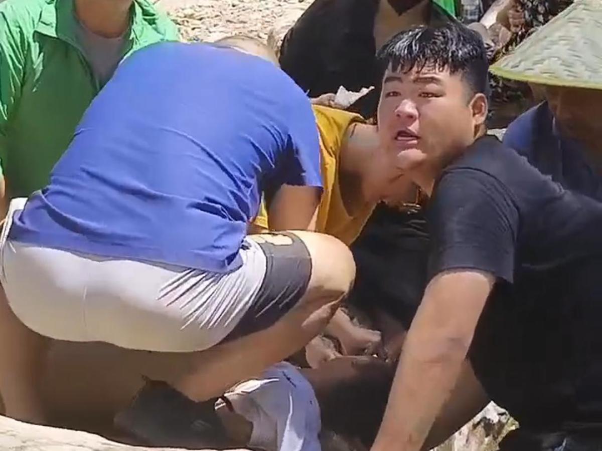 拖鞋跑丢了、衣服也没脱,陈耀就径直跳入水中。潭水很凉又有暗流,陈耀不顾危险潜入水底寻找男子踪迹,终于在4米深的水底发现了溺水者。面对冰冷的潭水和体力的极限,他3次潜入,凭借着顽强的意志和坚定的信念,终将溺水者艰难拉出水面。“快来人!快给他做心肺复苏和人工呼吸!”此刻,他已筋疲力尽,但仍坚持呼救,引来周围游客合力将溺水者抬至岸边。