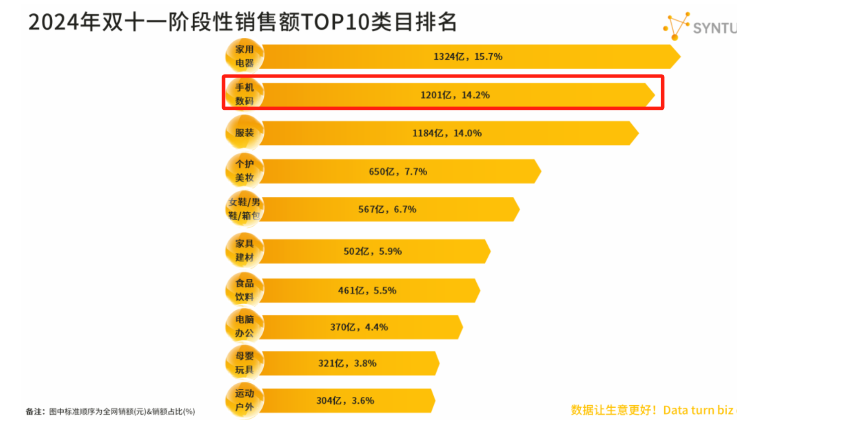 据星图数据显示,截至10月30日,全网累计销售额已达8450亿元,其中手机数码类目销售额为1201亿元,占比14.2%,在双十一阶段性销售额TOP10类目排名第二位。可见,手机数码产品在双十一期间的高需求和强劲销售。