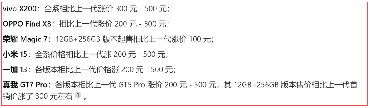 有媒体消息称,自2024年1月起,台积电计划将先进制程报价上调3%~6%,具体涨价幅度会根据制程、订单规模和合作紧密程度,不同厂商涨幅不一。据了解,近期国产手机厂商新发布的一批旗舰机型纷纷采用高通骁龙8至尊版和联发科天玑9400处理器,而这两款芯片均采用3nm制程工艺,且增强其在端侧运行AI方面的性能,成本居高不下。