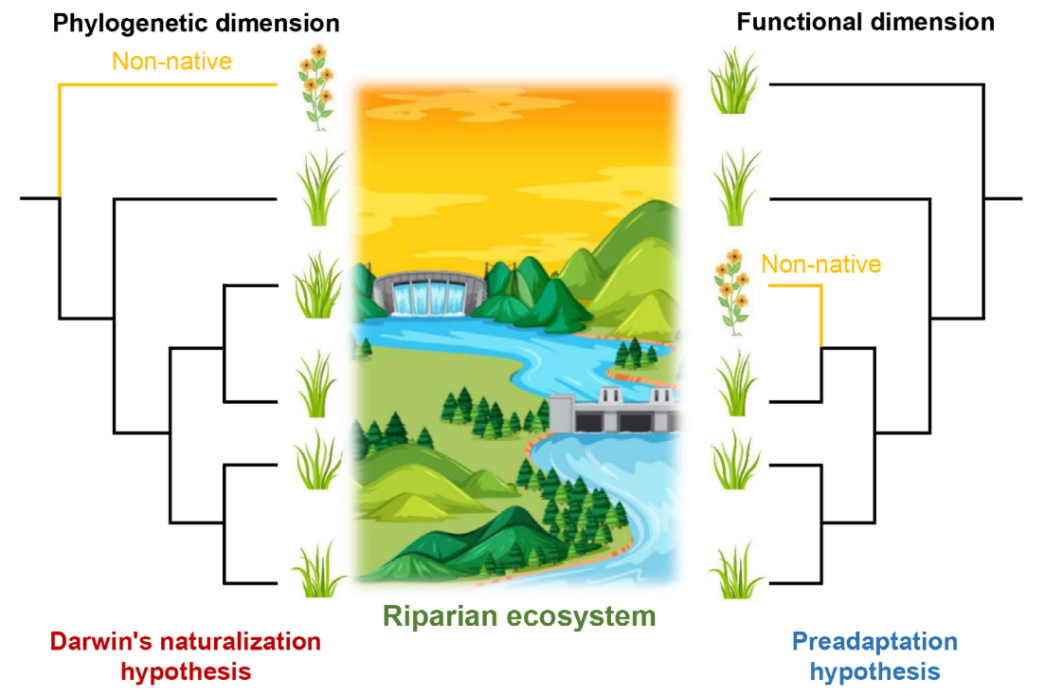 我们的研究结果为经典的达尔文归化谜团提供了新的解释,强调了周期性水位波动在驱动入侵物种的定殖和本土物种的适应过程中扮演着重要的角色,有助于更好地预测在水库河岸带中哪些外来物种更容易入侵水库河岸带,哪些本土物种所组成的群落更容易被入侵,从而保护河岸带生物多样性,减少外来物种入侵带来的威胁。