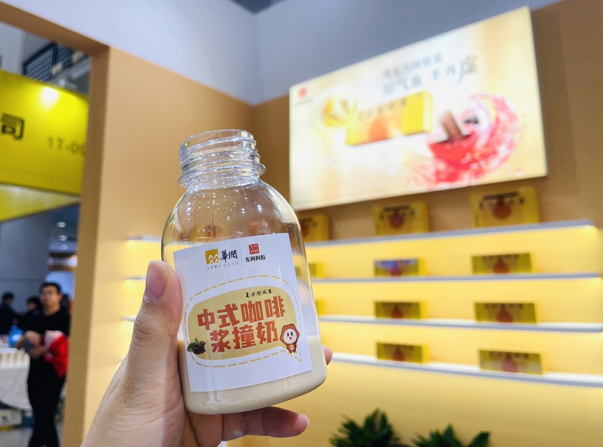 在中国知名品牌东阿阿胶的展位上,记者也关注到不少“年轻化”的元素。展位工作人员正为观众发放一款“浆撞奶”——将复方阿胶浆和牛奶“混搭”,以中和阿胶本身的药味,使之成为一款堪比“中式咖啡”的新饮品。工作人员说,他们还将在食博会上推出阿胶酸奶杯、阿胶奶茶,让年轻消费者眼前一亮。