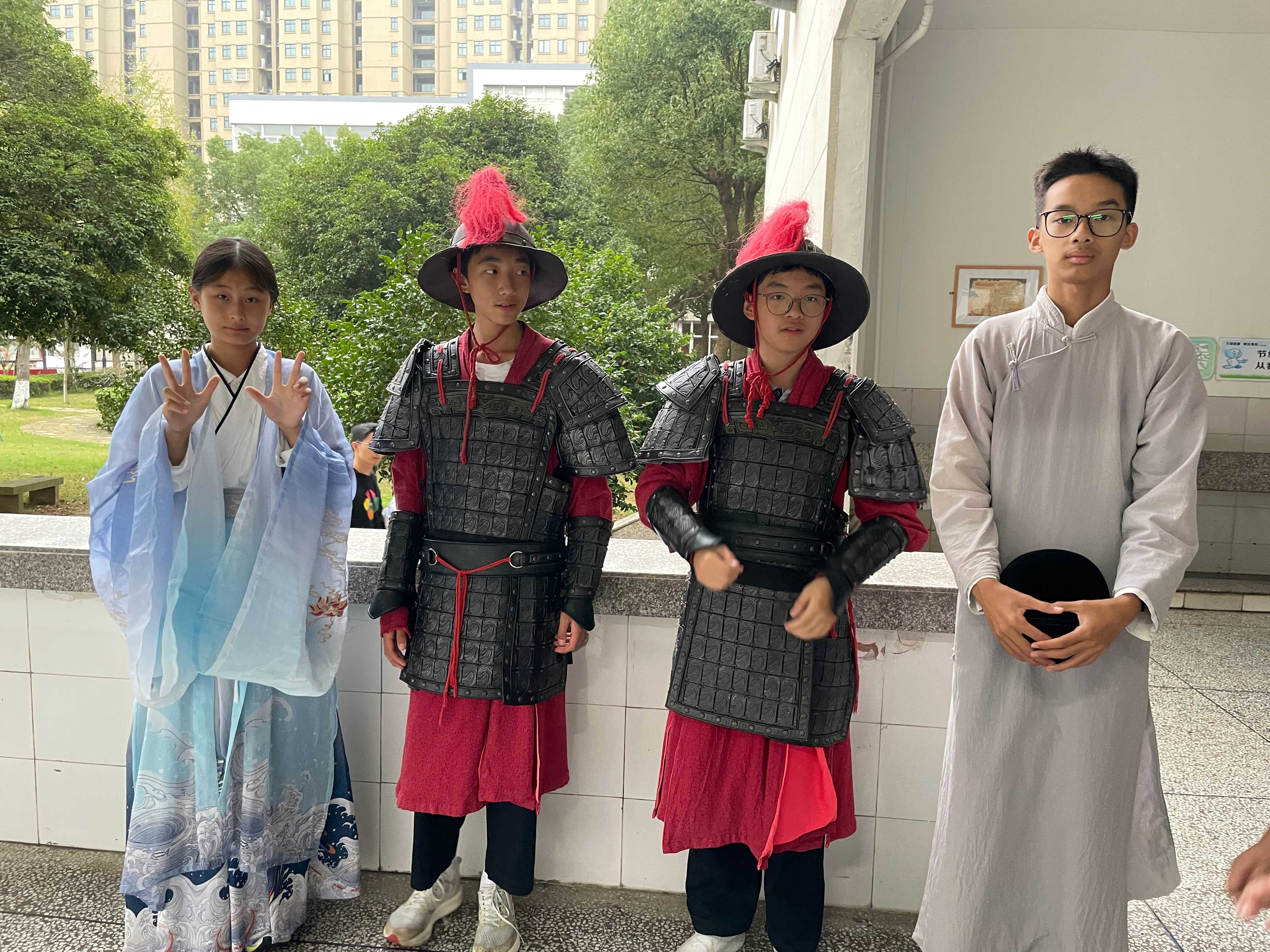 同学们体验老城服饰。通讯员供图