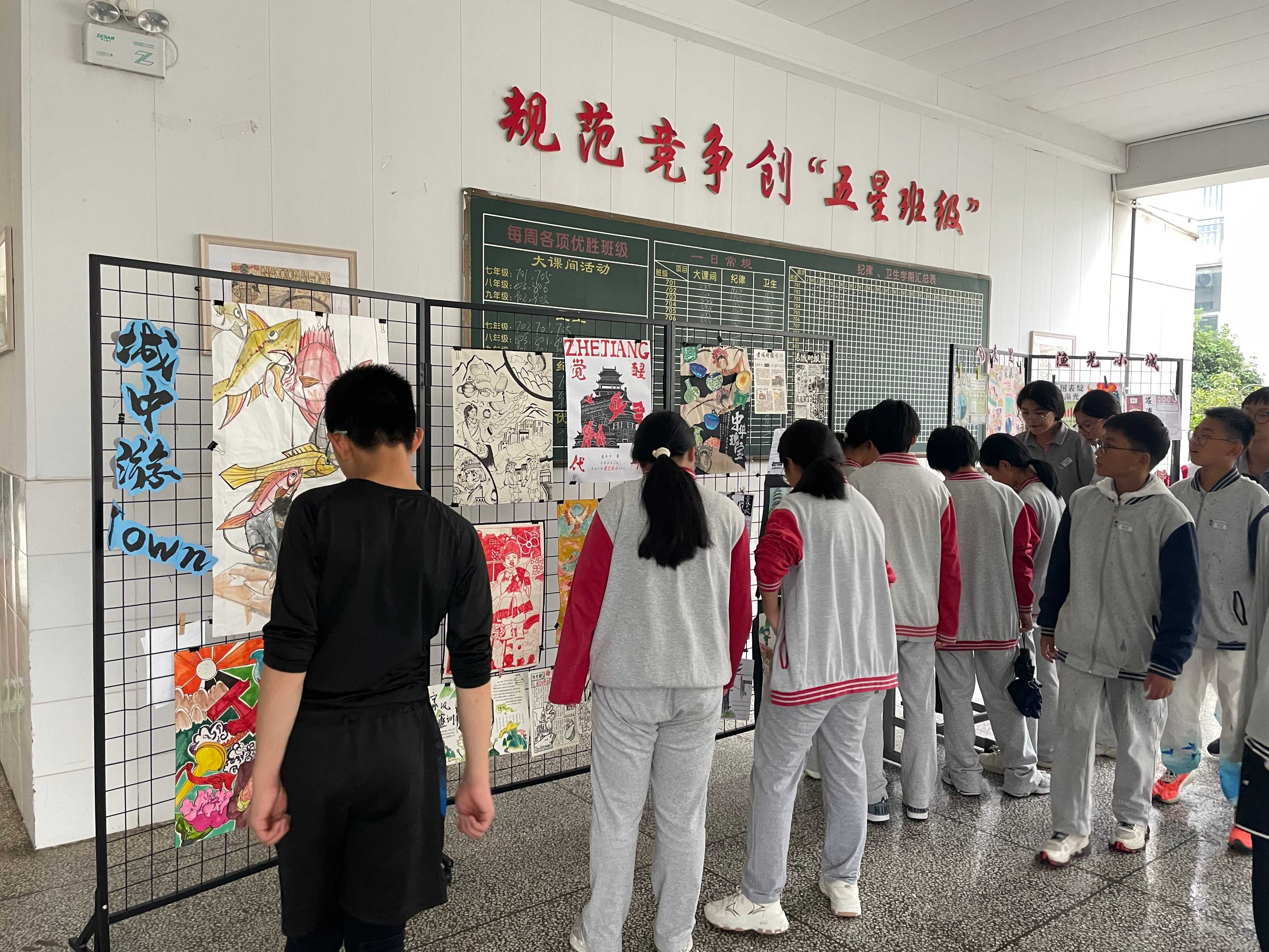 现场展出的老城作品形式多样,涵盖语、数、英、科、社、美术等多学科。语文是“纸上朋友圈”,学生们替老城中的风云人物如戚继光、柯受良、抗日战士等撰写一条朋友圈。数学是“几何绘古城”,小组成员收集老城石门、栏杆、石桥、窗户上优美的几何图形,绘制并理解其在数学中的应用价值。社会则是“穿越老城历史的游学”,大家绘制老城时报,以号外的形式图文并茂宣传老城历史事件。美术是“徜徉渔光之城”,通过探寻老城的山、城、海、港、岛,以泥塑等形式构建老城地标性滨海大图景。英语是“与海有约,玩转海趣”,学生们制作海洋漫游手册,中英文介绍石浦老城的海鲜特产、海洋生物……活动现场,学生们翻看、讨论作品,热闹非凡。