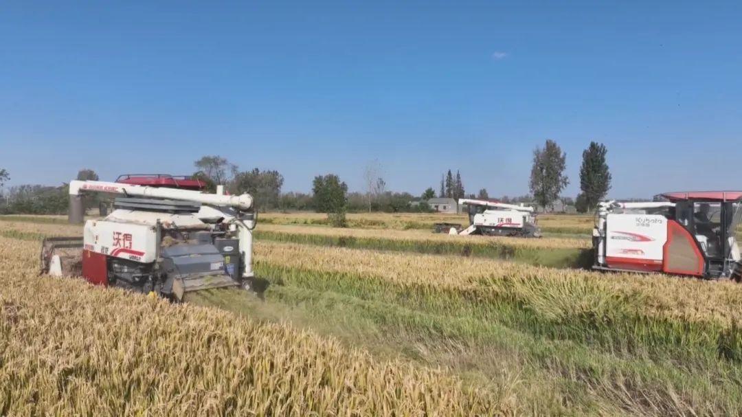 当下,正是阜宁秋收高峰期。在陈良镇盐港村高标准农田里,种粮大户苏海峰的600多亩稻田迎来丰收,四台收割机正在稻田里来回穿梭,金黄色的稻穗卷入机器,顷刻间留下一排整齐的稻茬。苏海峰介绍:“我在盐港村承包了600亩的土地种粮食,平均每亩的产量在650公斤左右。”