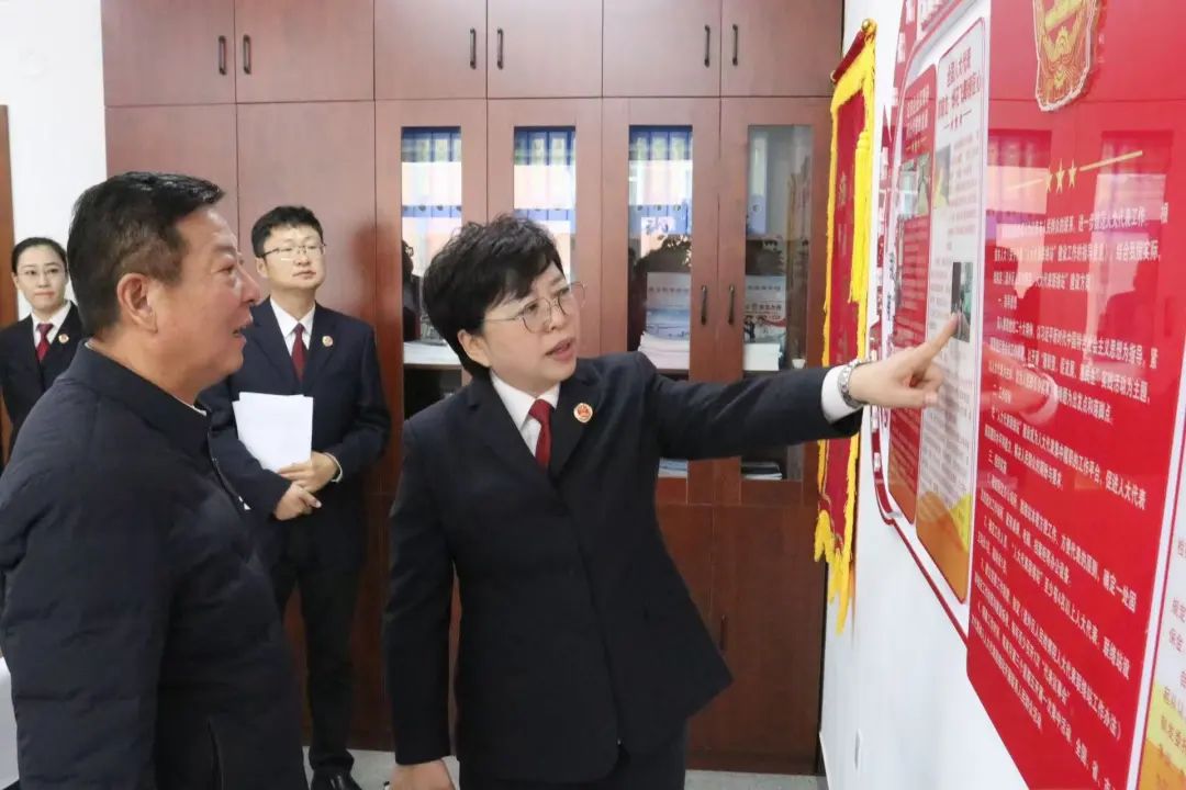 道外区人大代表调研组一行,到道外区检察院开展经济犯罪检察工作专题调研,并就服务企业发展、强化行刑衔接等工作进行深入交流。图为检察官详细介绍该院代表联络站工作开展情况。(韩兵 王桦摄)