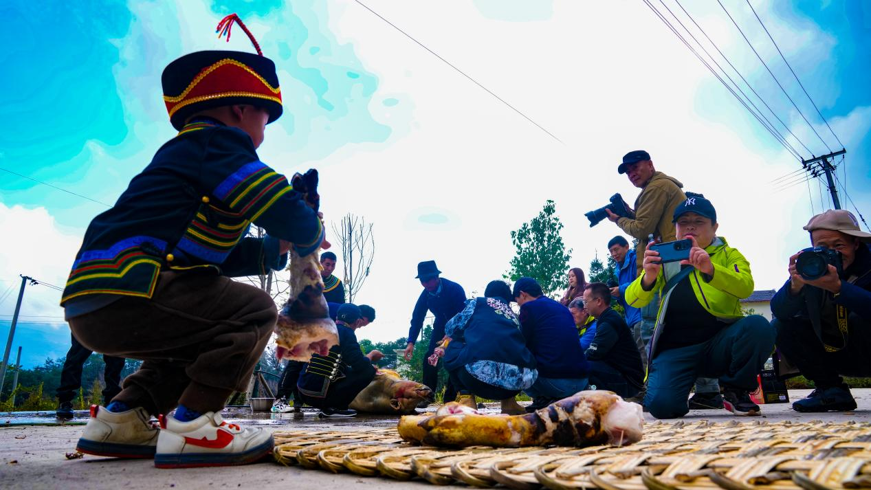 “在2024年彝历新年之际,我们前往了普格县螺髻山镇,亲眼目睹了镇上的显著变化,尤其是在道路交通和卫生条件上,都焕发出了新的生机。今天,我们在一户农家体验了当地的杀年猪习俗,并品尝了他们烹饪的美食,味道很好。借此机会,我们打算用相机记录下彝历新年的美丽瞬间加以宣传,让更多人能够了解和欣赏到这里的自然美景与人文风情。此外,我们还会辅导当地的摄影爱好者,教他们如何运用手中的手机,将家乡的美好与精彩展现给更多的观众。”中国摄影家协会会员、凉山州摄影家协会副主席杨黎明如是说道。