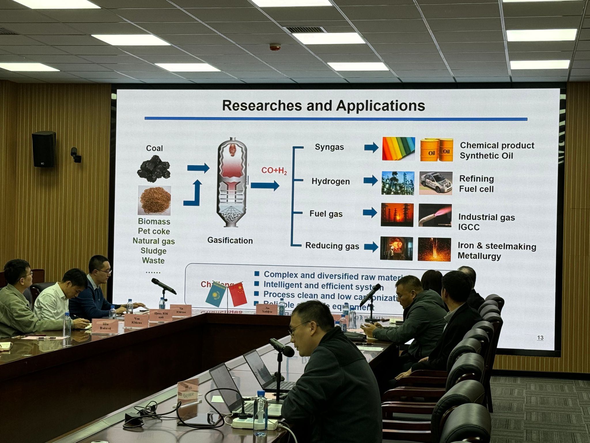 随后,刘海峰教授“低碳能源化工”团队成员沈中杰博士围绕团队重点实验室与工程中心、研究与应用领域、设备设施、研发与合作项目、研发前景等方面作了介绍。卡拉干达布克托夫大学对其中关于研究与应用领域部分的合成气、氢气、燃料气体、还原气体四个研究方向表达了浓厚的兴趣,希望未来实验室的合作以此为重点推进和展开。刘海峰表示,合作将在煤化学研究的基础上,依托国家级重点实验室和重点企业开展煤资源清洁、高效利用,把研究技术转化为现实生产力。