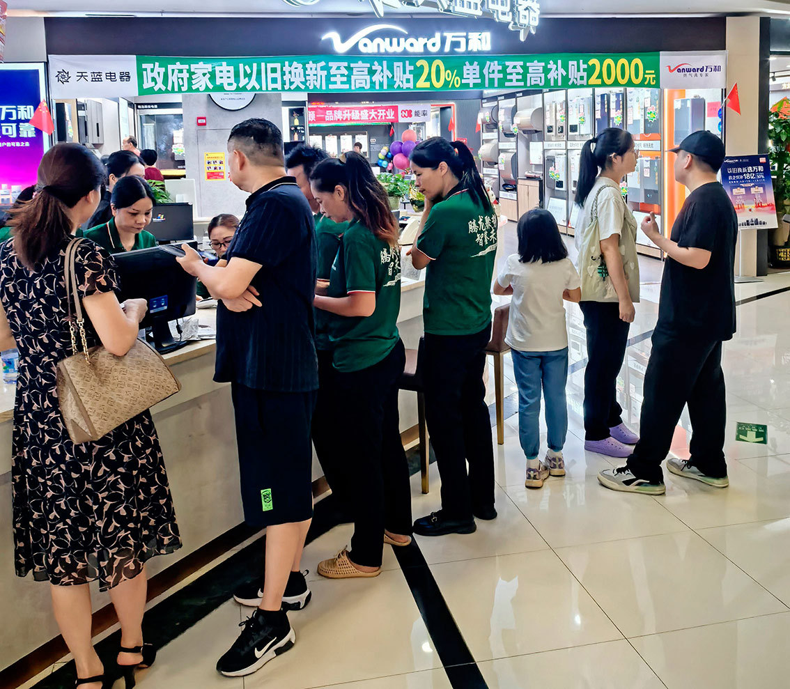 家电以旧换新活动期间,消费者现场领券下单。 刘文坚/摄