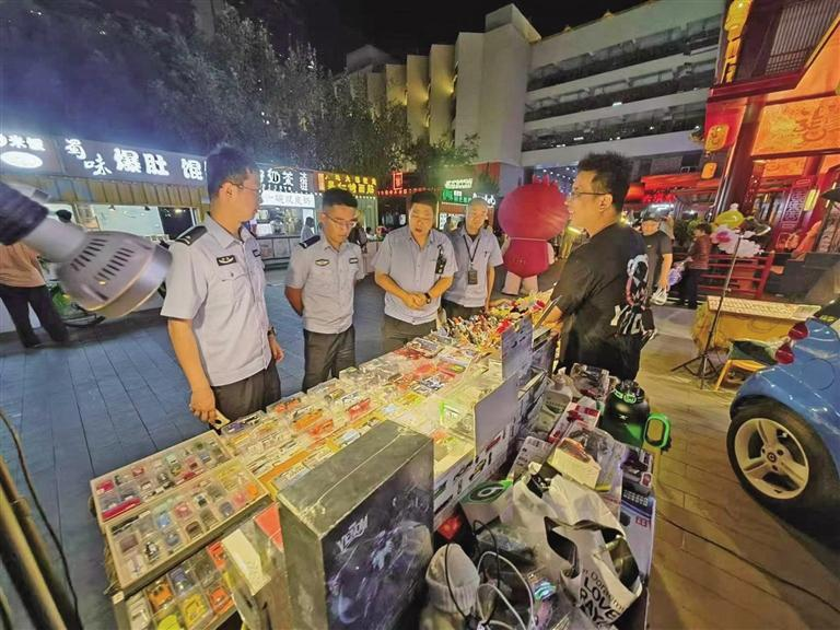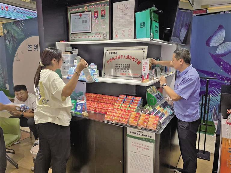扎实开展规范电子烟市场秩序专项检查,联合公安、市场监督管理等部门对中小学校周边、大型商场、电脑市场、酒吧烧烤、娱乐服务、夜市摊点等区域开展联合检查,重点检查违法销售“上头”电子烟、奶茶杯、可乐罐等违法行为以及涉嫌存在电子烟生产“黑作坊”、地下存储窝点等情况。日常对电子烟零售户进行专项检查,重点核查警示标识张贴、消费者身份核验记录、店内违规广告宣传等内容,保证电子烟市场秩序更加规范。截至目前,查获违法销售电子烟案件13起,查扣非国标电子烟4913个,组合产品130个,一次性电子烟397个,查处卷烟电子烟无人售卖机1台。