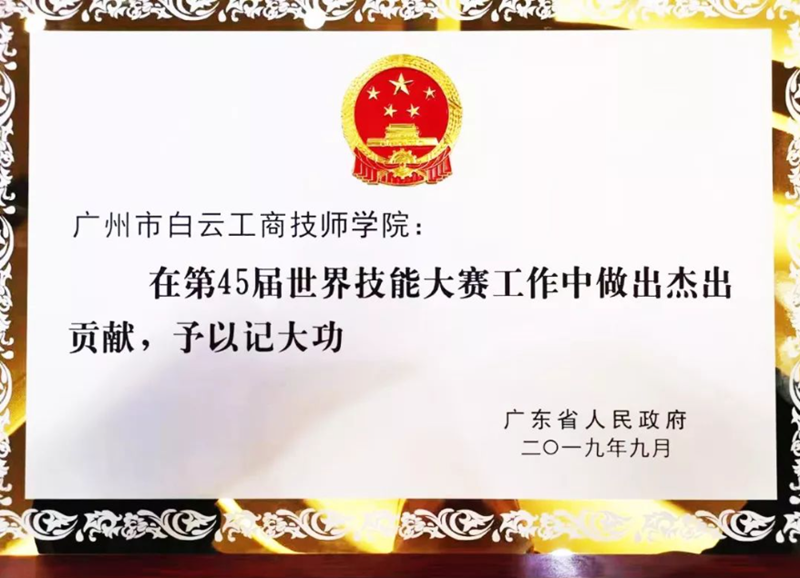 值得一提的是,这是继第45届世界技能大赛上广州市白云工商技师学院培养的温彩云同学夺得时装技术项目金牌,广东省人民政府对广州市白云工商技师学院予以记大功表彰之后,学院被再次予以记大功表彰!(通讯员:黄丽珊)
