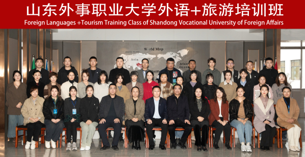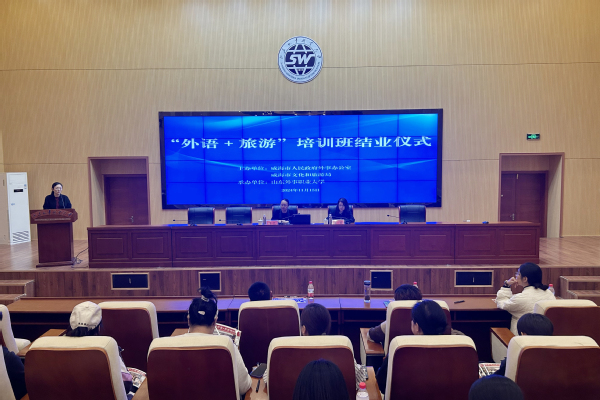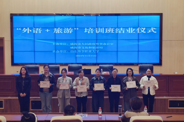 11月14日,由威海市人民政府外事办公室和威海市文化和旅游局联合主办、山东外事职业大学承办的威海市“外语+旅游”培训班在汇远楼206正式开班,11月15日成功结业。威海市人民政府外事办公室副主任张炜,威海市文化和旅游局副局长毛金萍,学校党委副书记、副校长李恒强出席开班仪式。